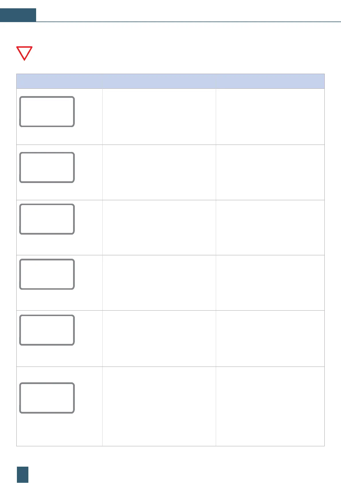 Alarma / avería: Posibles causas: Acciones a efectuar: