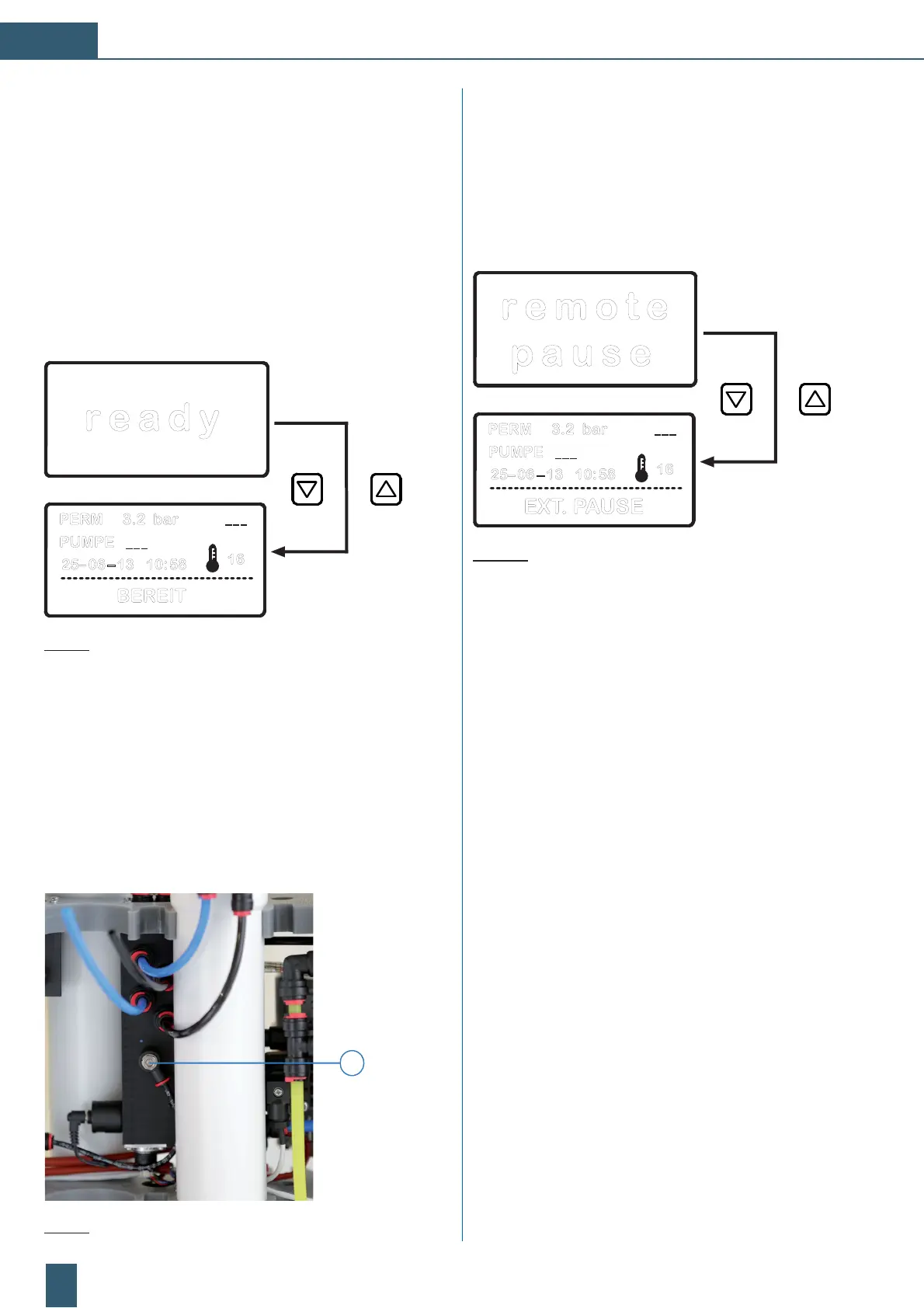 Im Betriebszustand „remote pause/EXT. PAUSE“ wird das RO