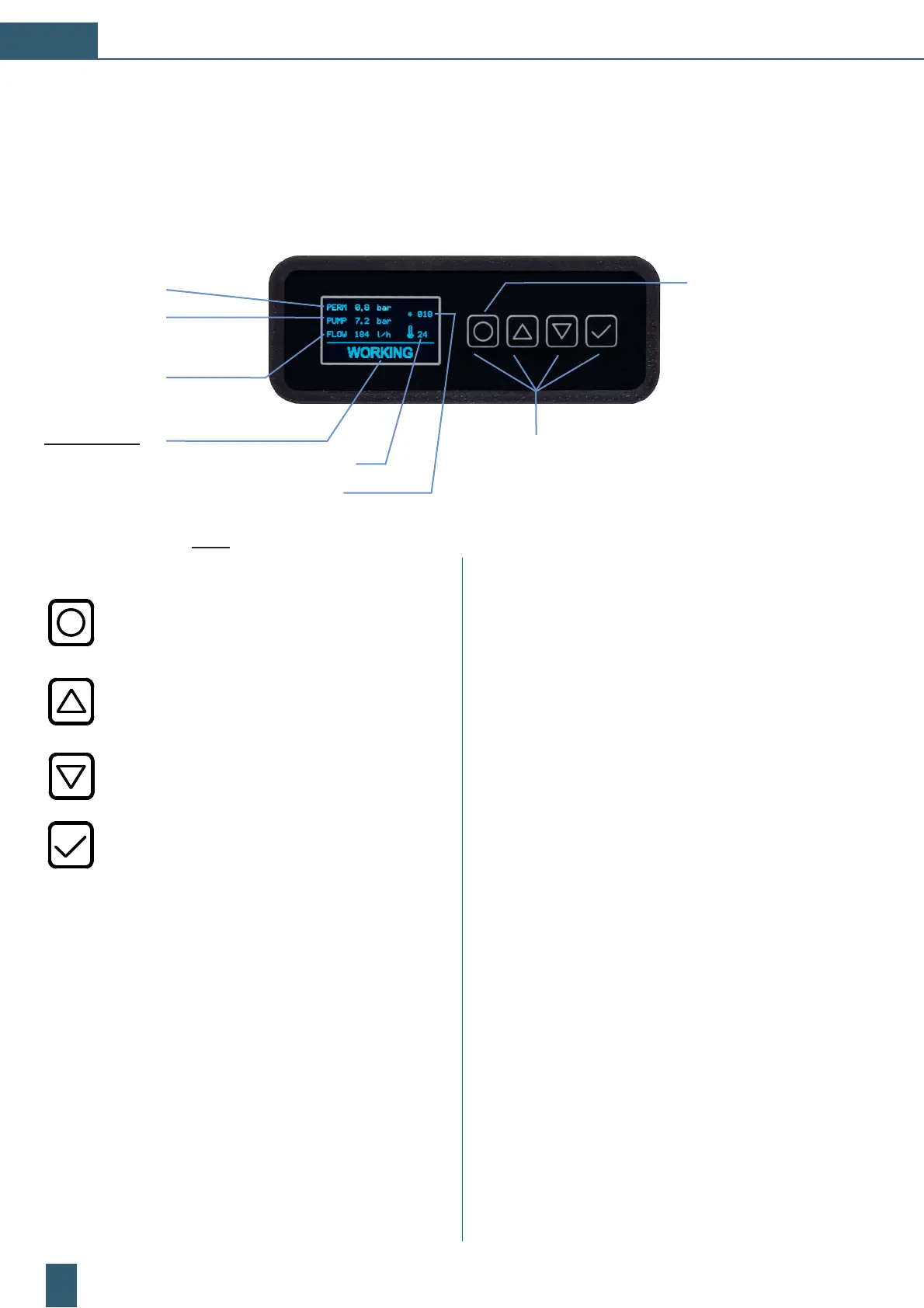 The display of the RO unit shows after the starting phase all currently measured operating values.