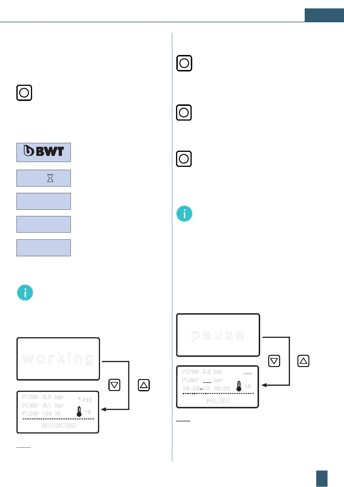 Note: In the operating mode “working/WORKING“ starts