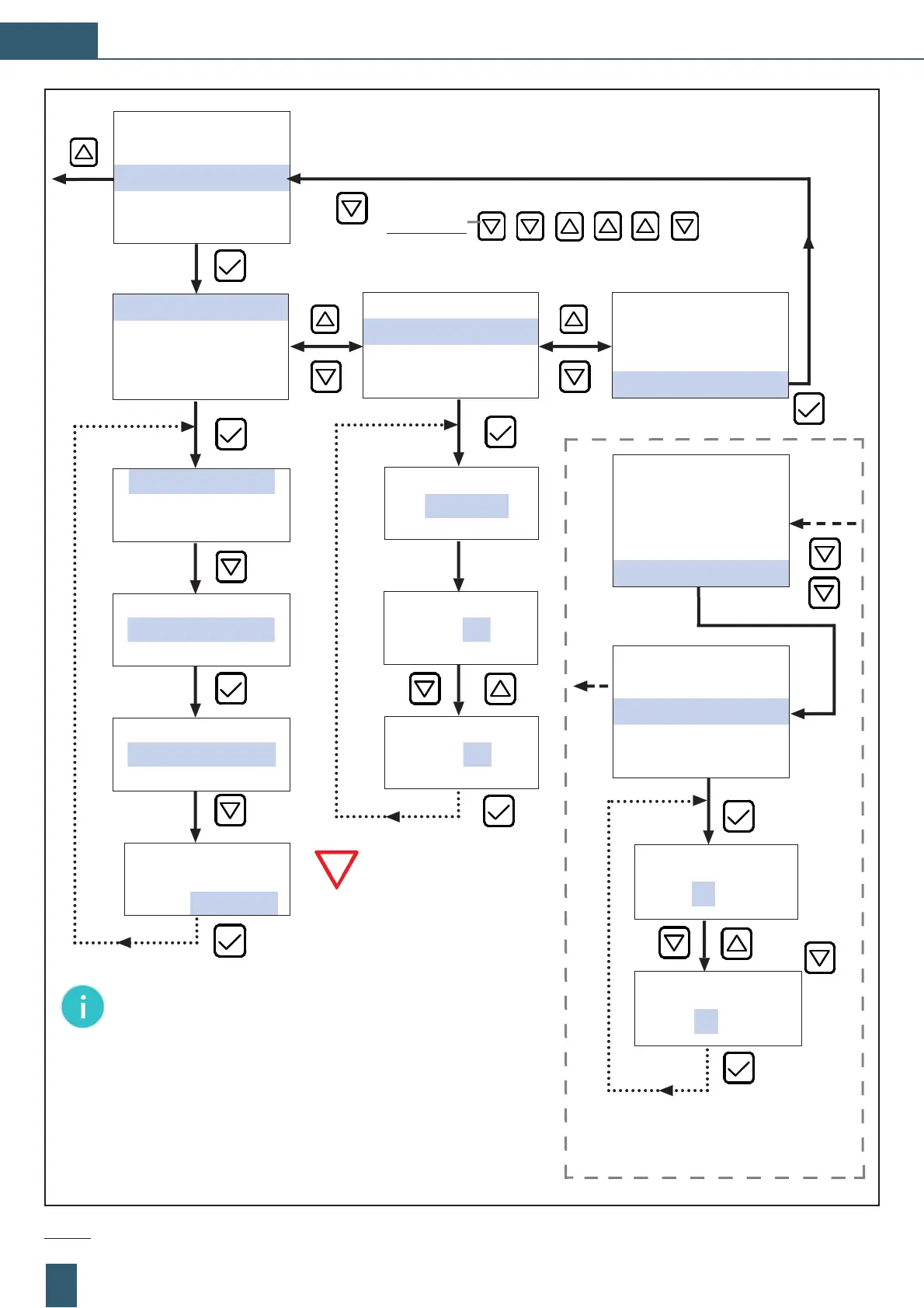 Fig. 14: Programming procedure: “OPERATION MODE“, “STOP PRESSURE“ and “FLUSH TIME“ – Example scheme