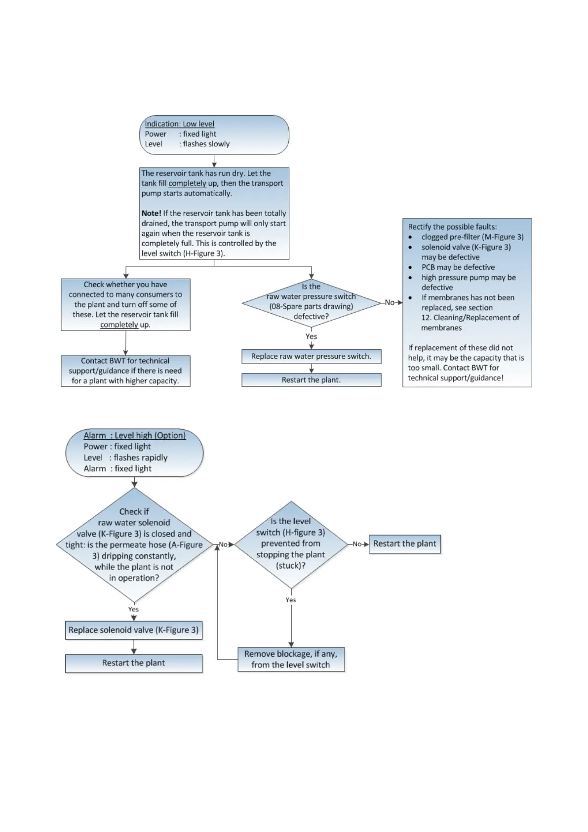 BWT PERMAQ COMPACT 51 - 9.2.5 Indication: Level low; 9.2.6 Alarm: Level high