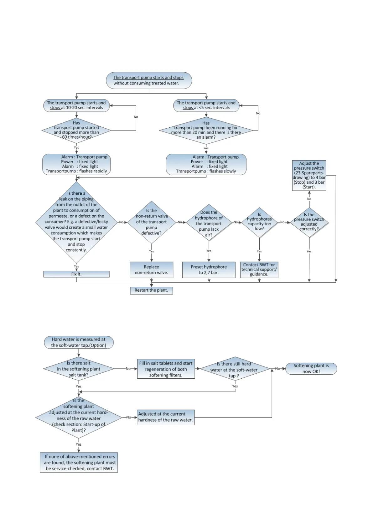 BWT PERMAQ COMPACT 51 - 9.2.8 Alarm: The transport pump stops and starts; 9.2.9 Hard water is measured at the soft-water tap (option)