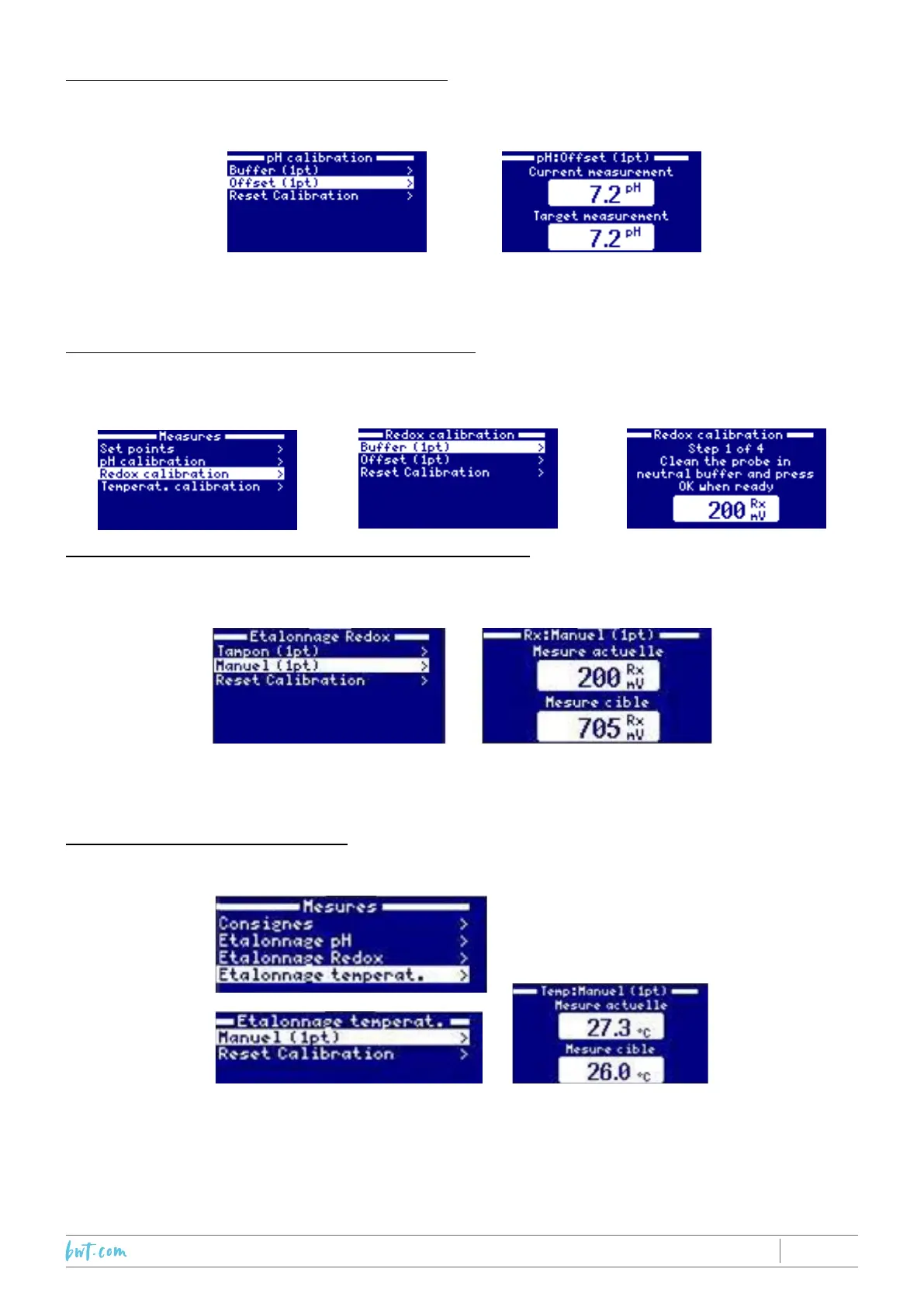 BWT PRO A 22 - Calibrating pH Sensor (without buffer); Calibrating Redox Sensor (with buffer); Calibrating Redox Sensor (without buffer); Calibrating Temperature Sensor