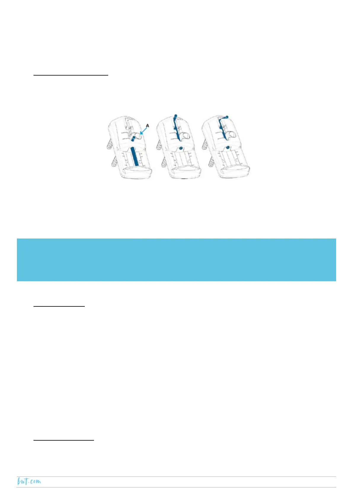 Press the button A and push the slide bar up to release the strap ring.