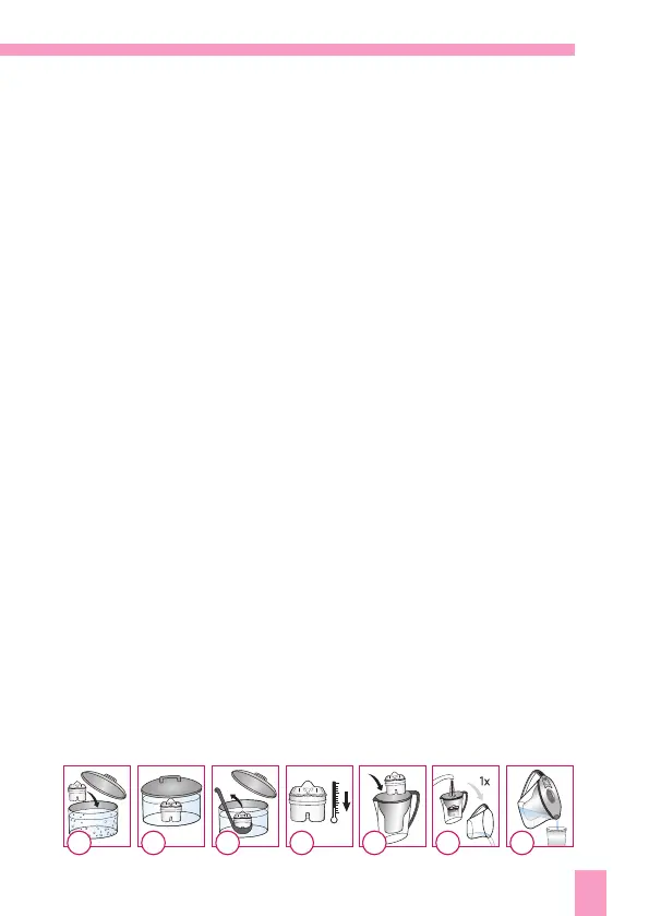d‘acqua e riempire nuovamente la caraffa ltrante.