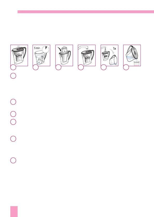 Przed pierwszym użyciem lub wymianą zużytego wkładu ltrującego dzbanek, lejek