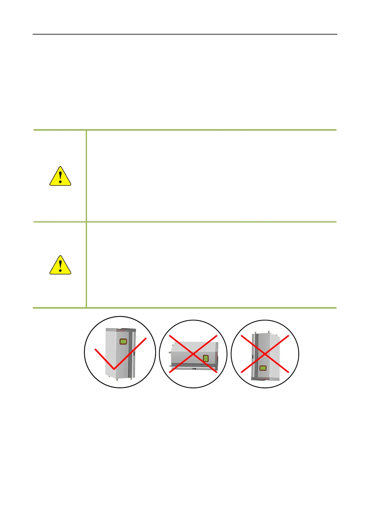 The DESS cabinet shall be placed on a level surface and vertically installed. The correct placement of