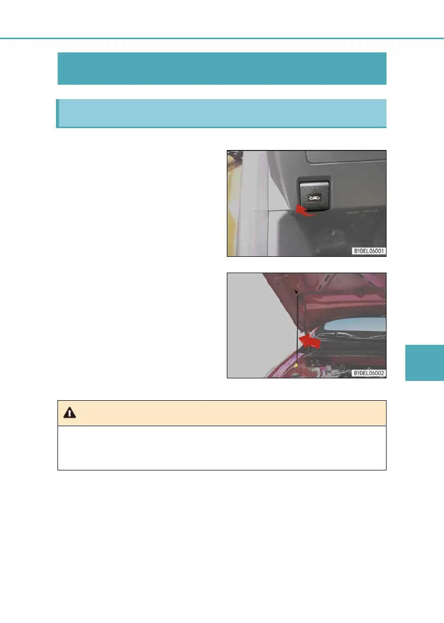 ● Before driving, ensure that the front hood is already closed and securely locked.