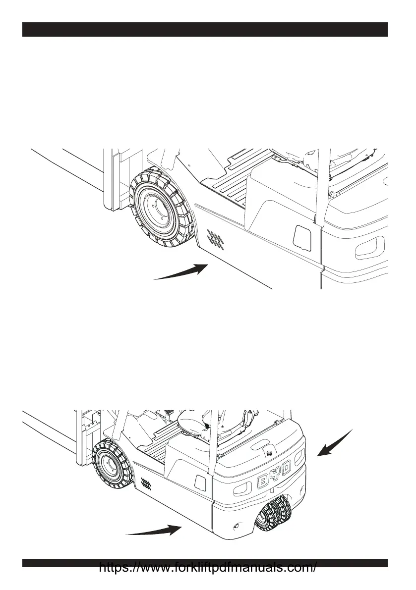 1. Park the forklift on the level floor, apply the handbrake, switch off the forklift, remove the