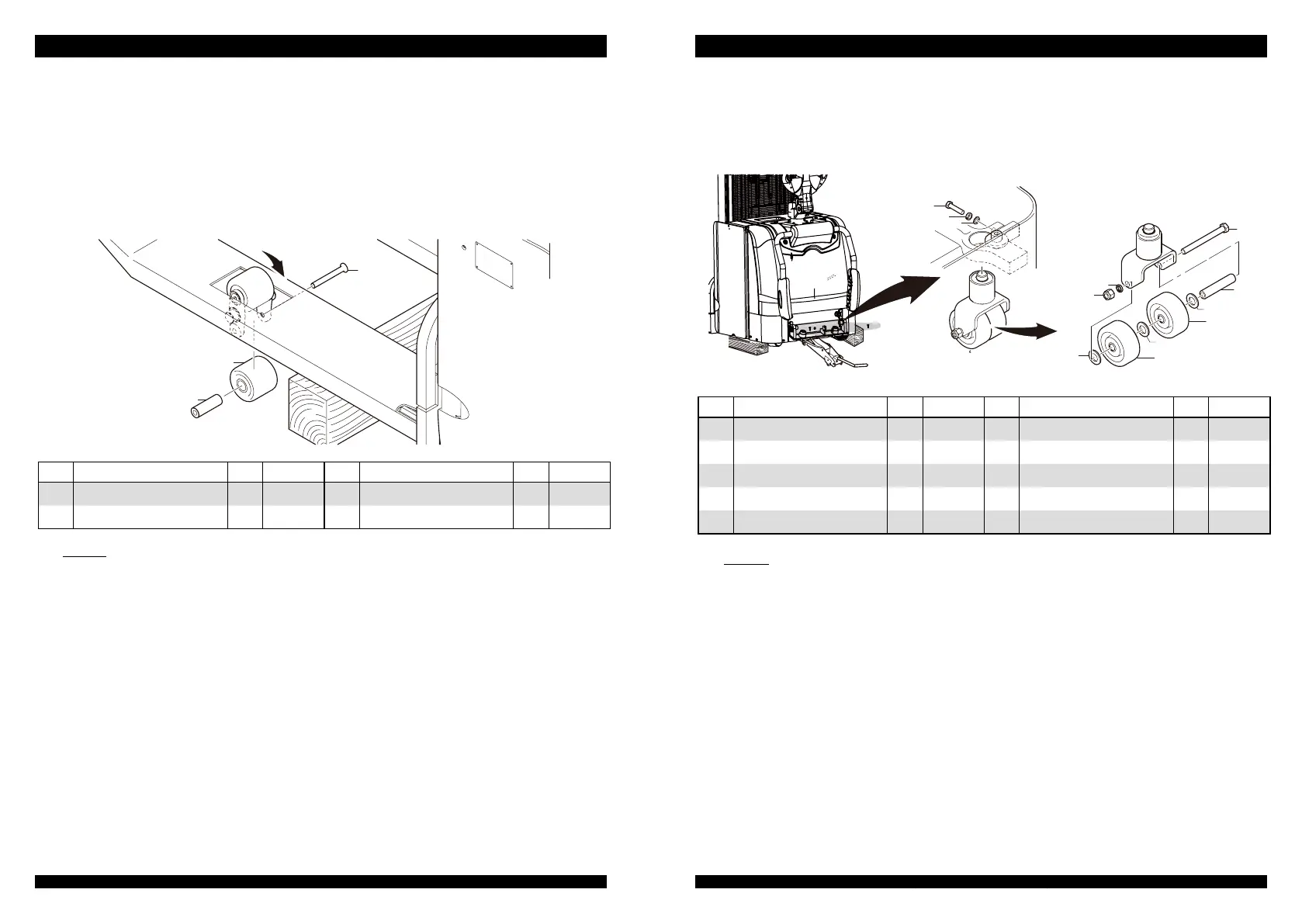 (2) Unscrew the screw. Replace the support wheel and then rotate 180