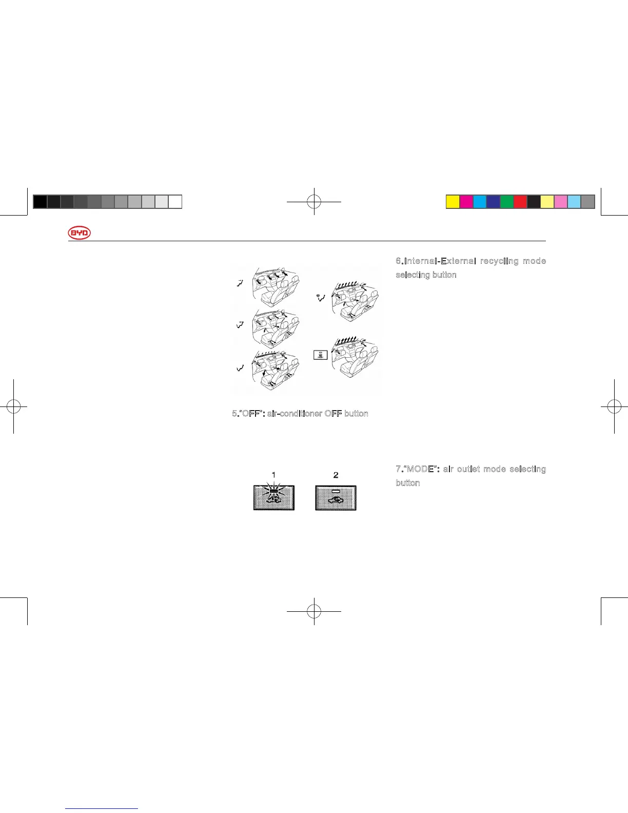 7.“MODE”: air outlet mode selecting