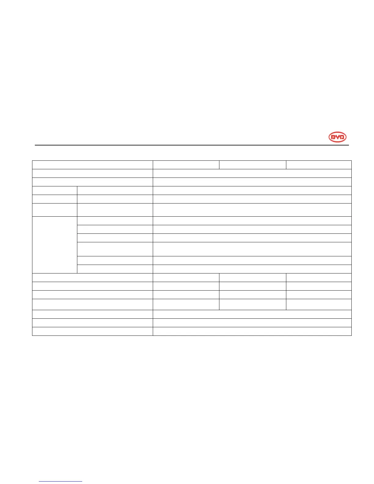 Vehicle Performance Parameters of BYD AUTO