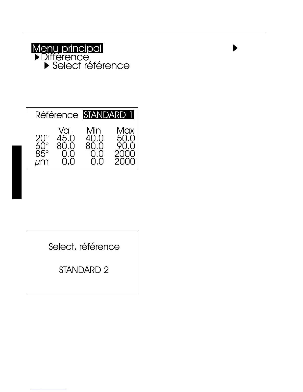référence souhaitée sur l’écran,