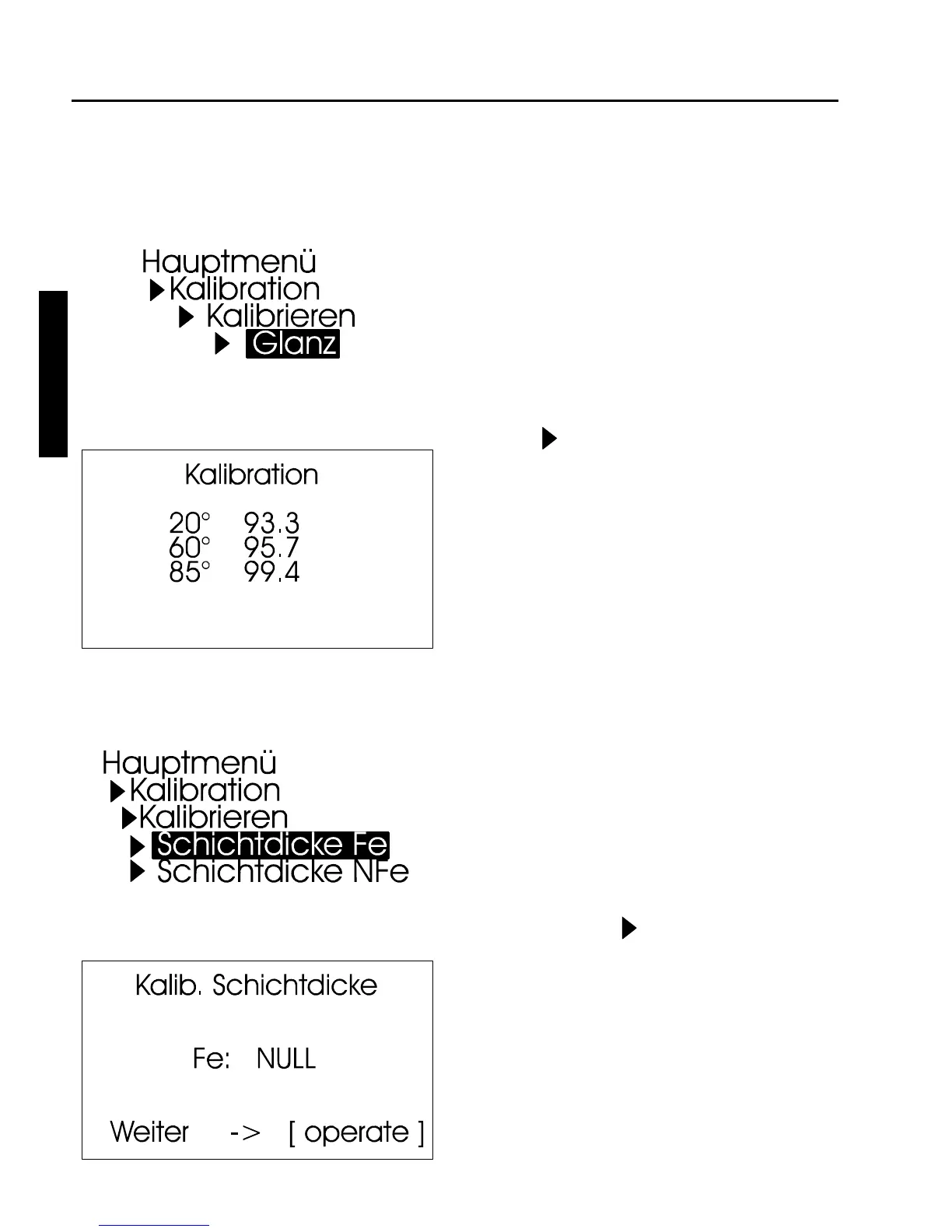 Menüpunkt Kalibrieren Glanz.
