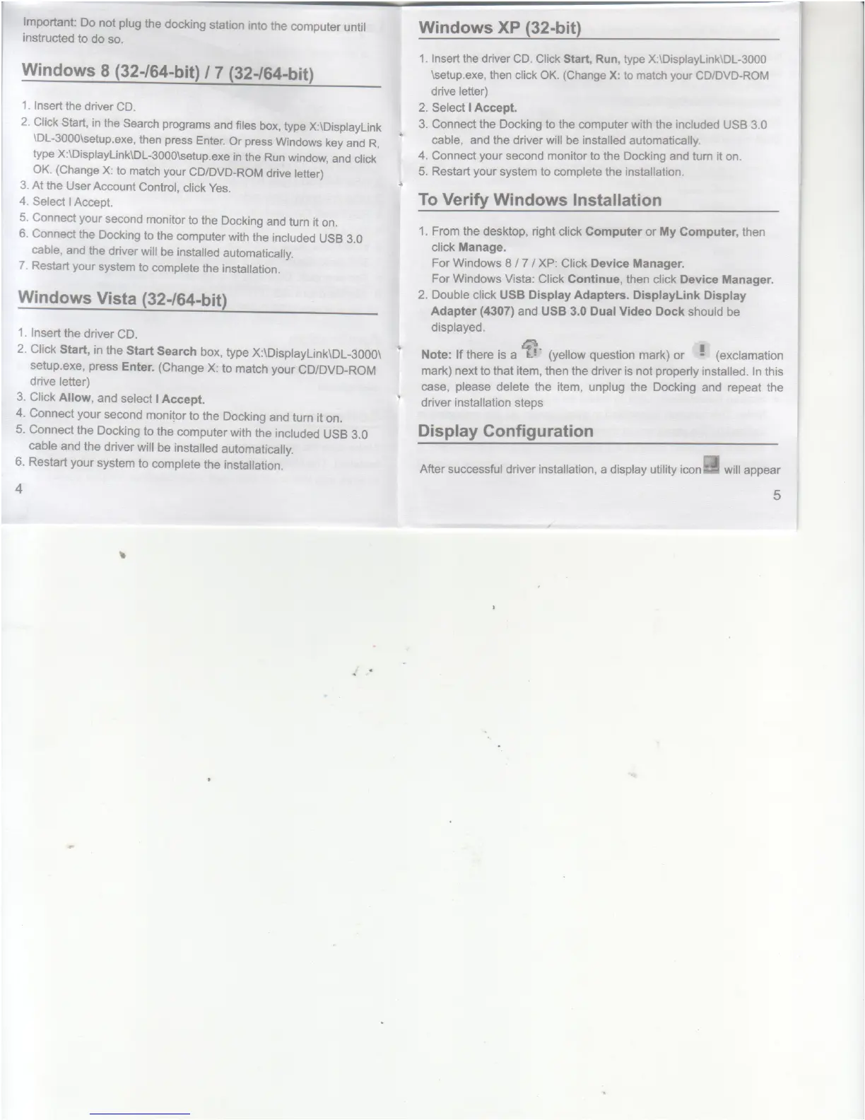 Bytecc T-236U3 - Operating System Installation; Windows 8;7 Installation; Windows Vista Installation; Windows XP Installation