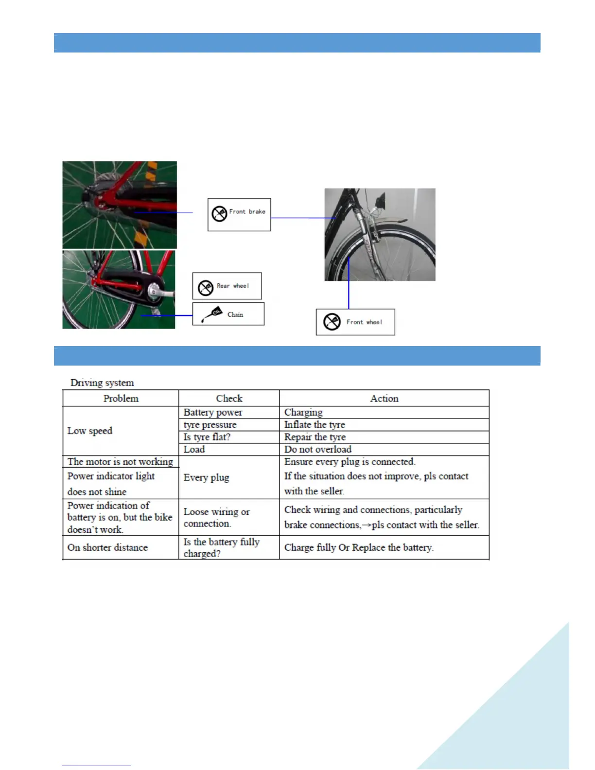 1. Wipe the bike with a dry cloth, or neutral detergent.