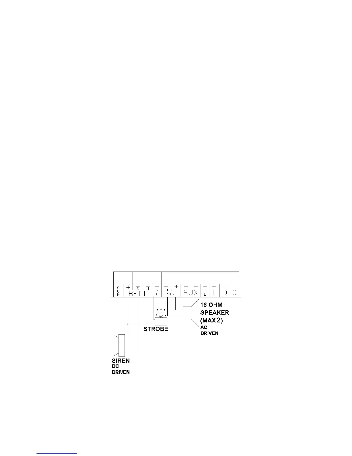 alarms. If an extra speaker/s is required, it should be connected to the terminals