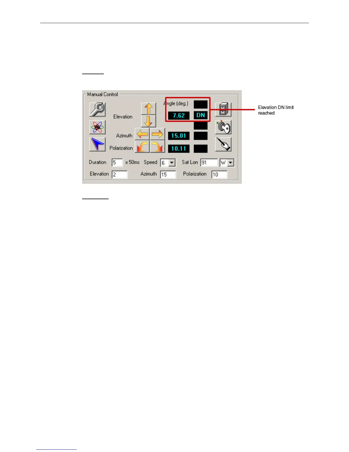 Move the elevation UP, until the DN limit turns OFF, and move the