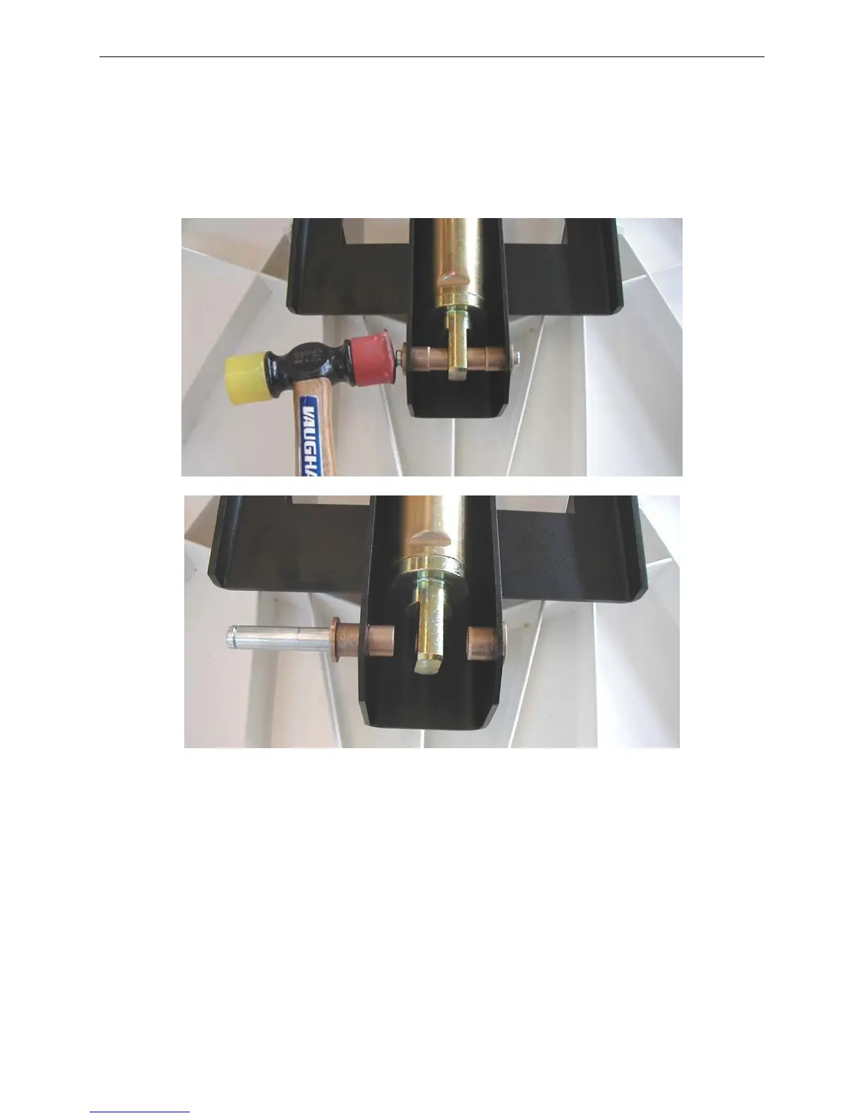 Fig. 14: Hammering Out Clevis Pin (Top) and Loosened Actuator (Bottom)
