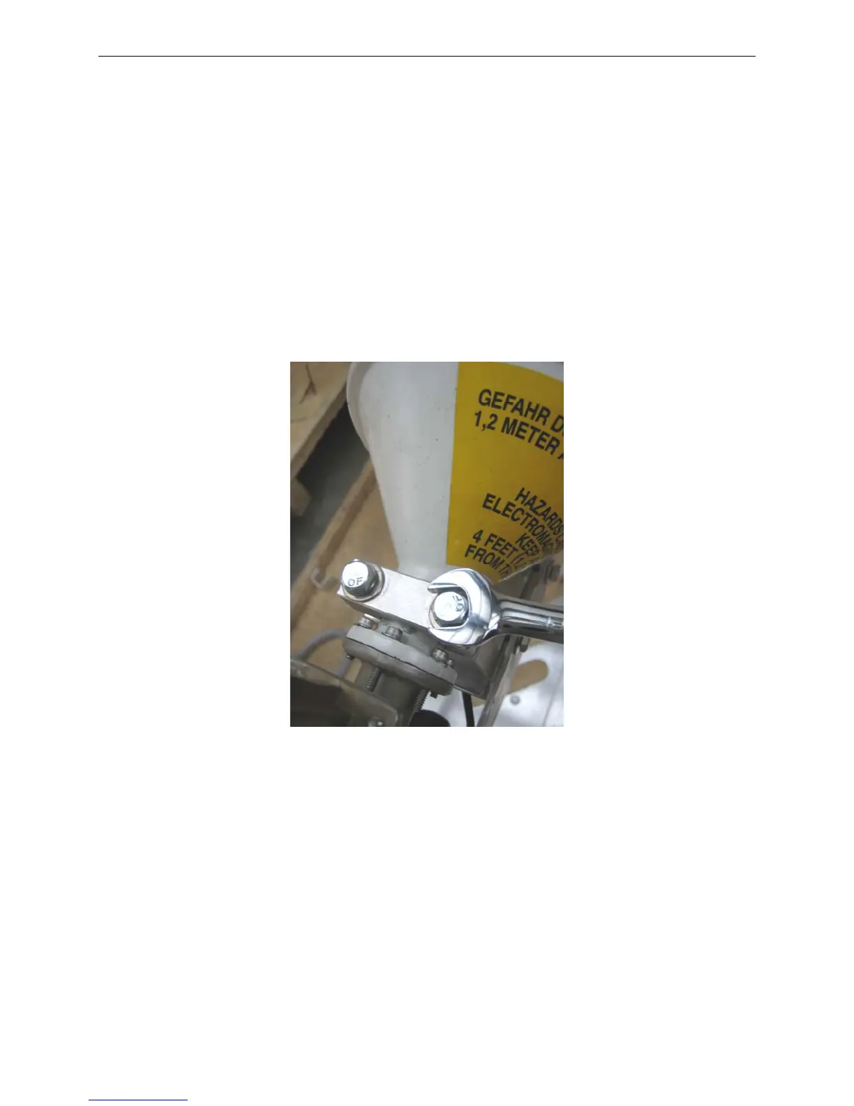 2. Loosen the two (2) bolts located on the Feed Horn Assembly using the 7/16”