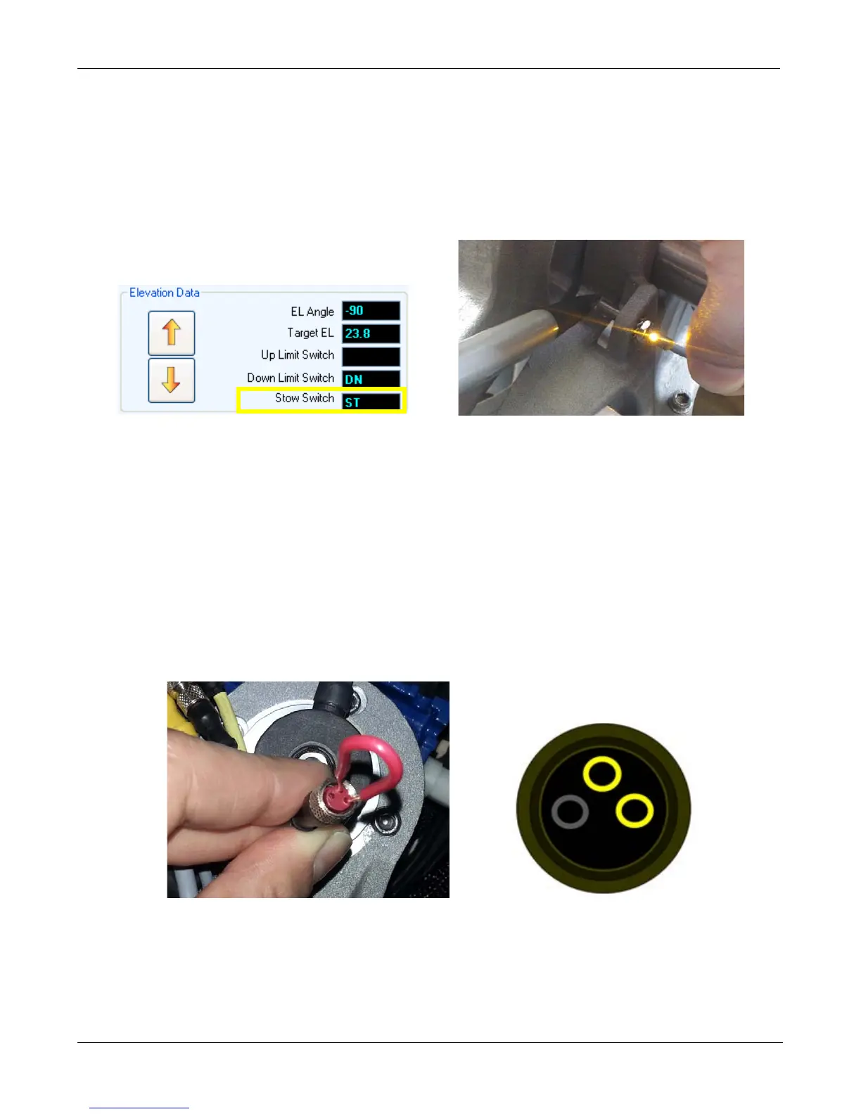 a. Disconnect the Elevation limit switch from the internal wiring harness and place a paper clip or