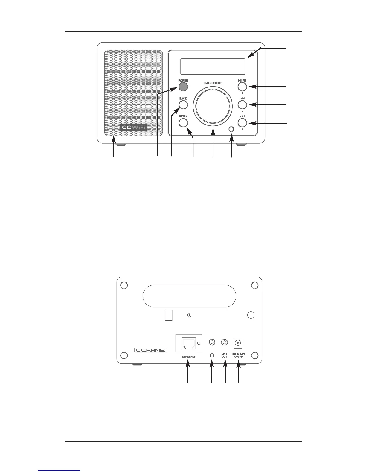 C. Crane CCWiFi - Radio Controls and Connections; Front and Rear Panel Controls