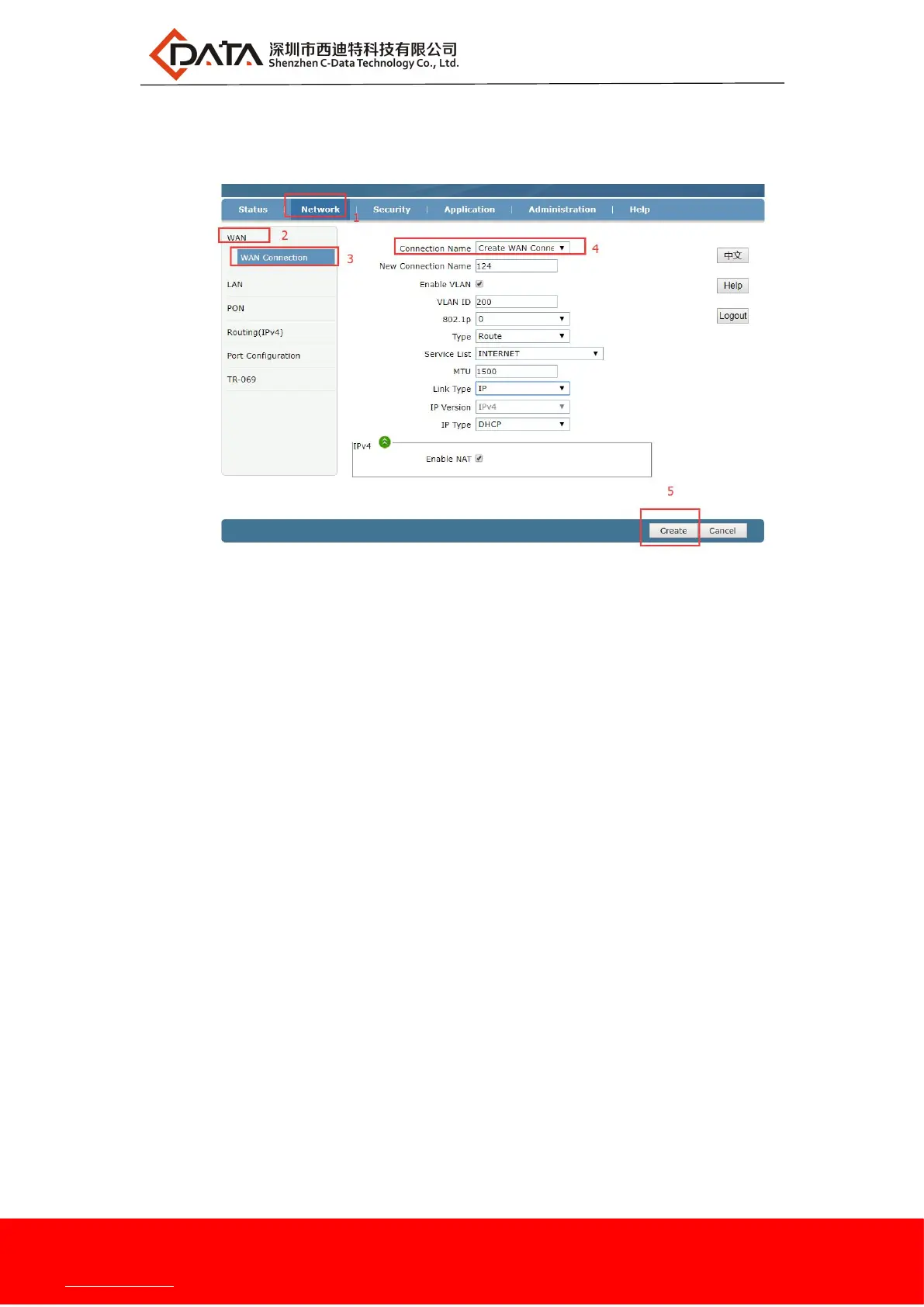 1.web login ONU and select Network -> WAN -> WAN Connection, and then set