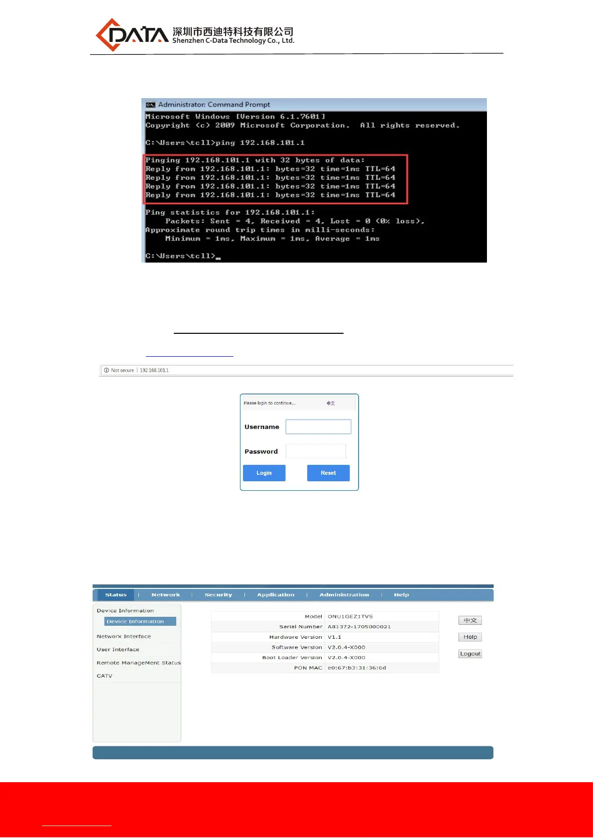 URL: http: //192.168.101.1, pop-up as follows ONU prompt landing page: