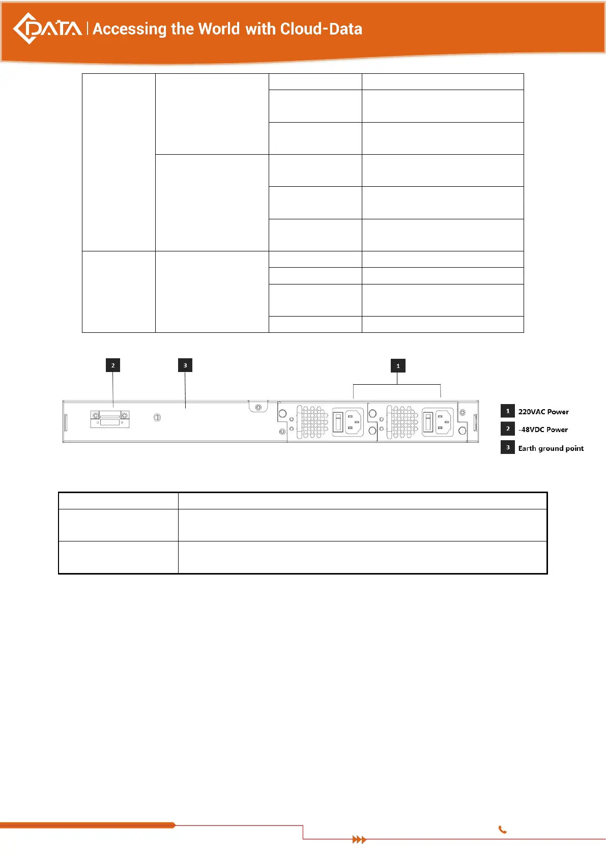 When use DC power supply, the input voltage is -48VDC, the allowed range is -36 ~ -72