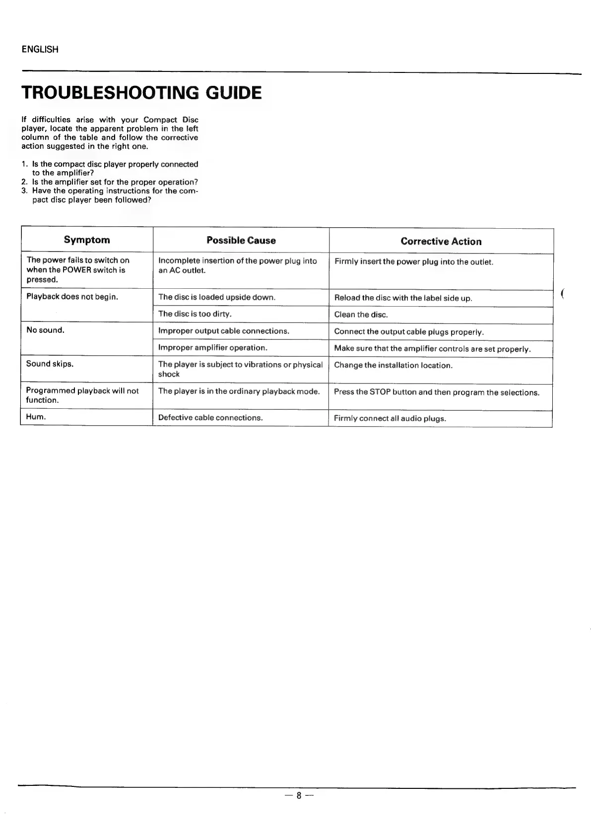 TROUBLESHOOTING