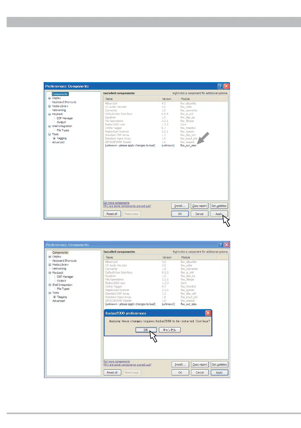 The installing component "foo_out_asio" will be listed up marked with (unknown). Click