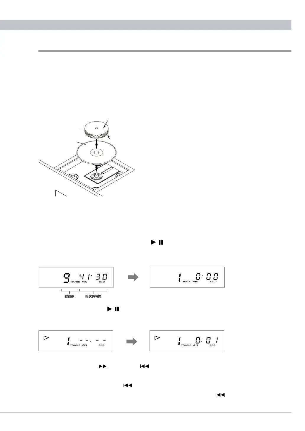 return to the beginning of the track being played. Press the backward