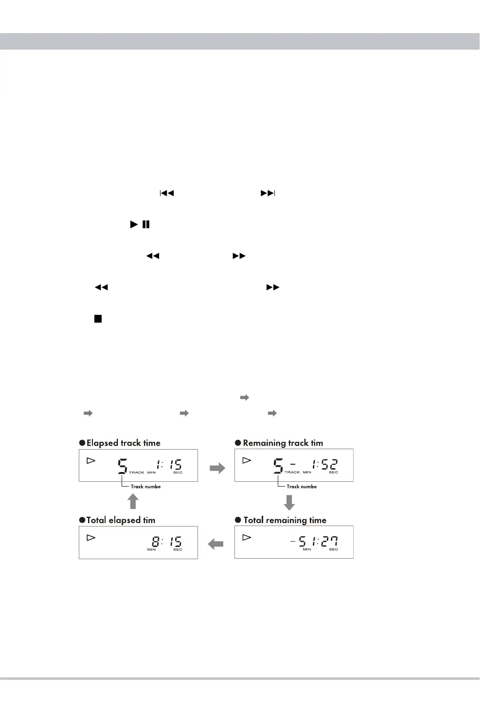 number/elapsed track time (default display) track number/remaining track