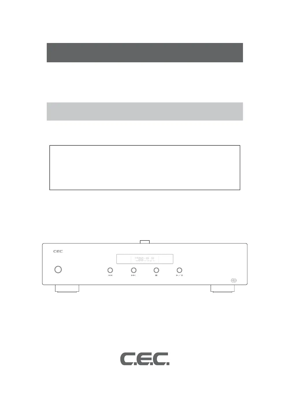 If your C.E.C. CD Player has no sound, ensure the connections are correctly made as per the manual. Also, select an input with a connection and verify the connections, input selection, and volume setting. Power cycling all devices involved might also resolve the issue.