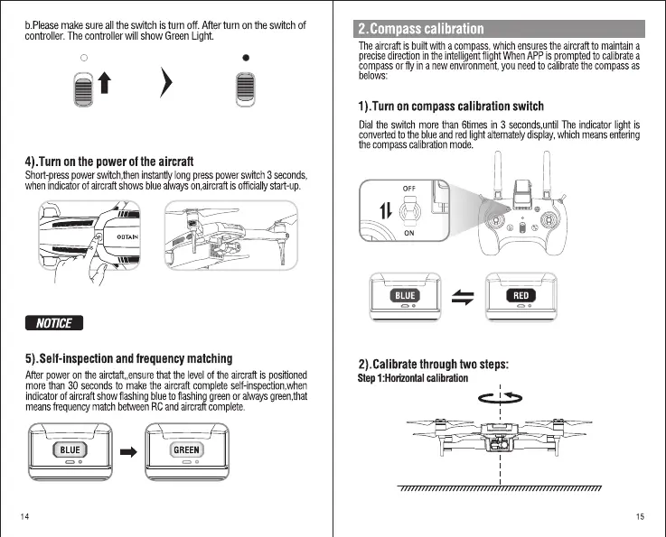 Please turn on the RC before turn on the aircraft.