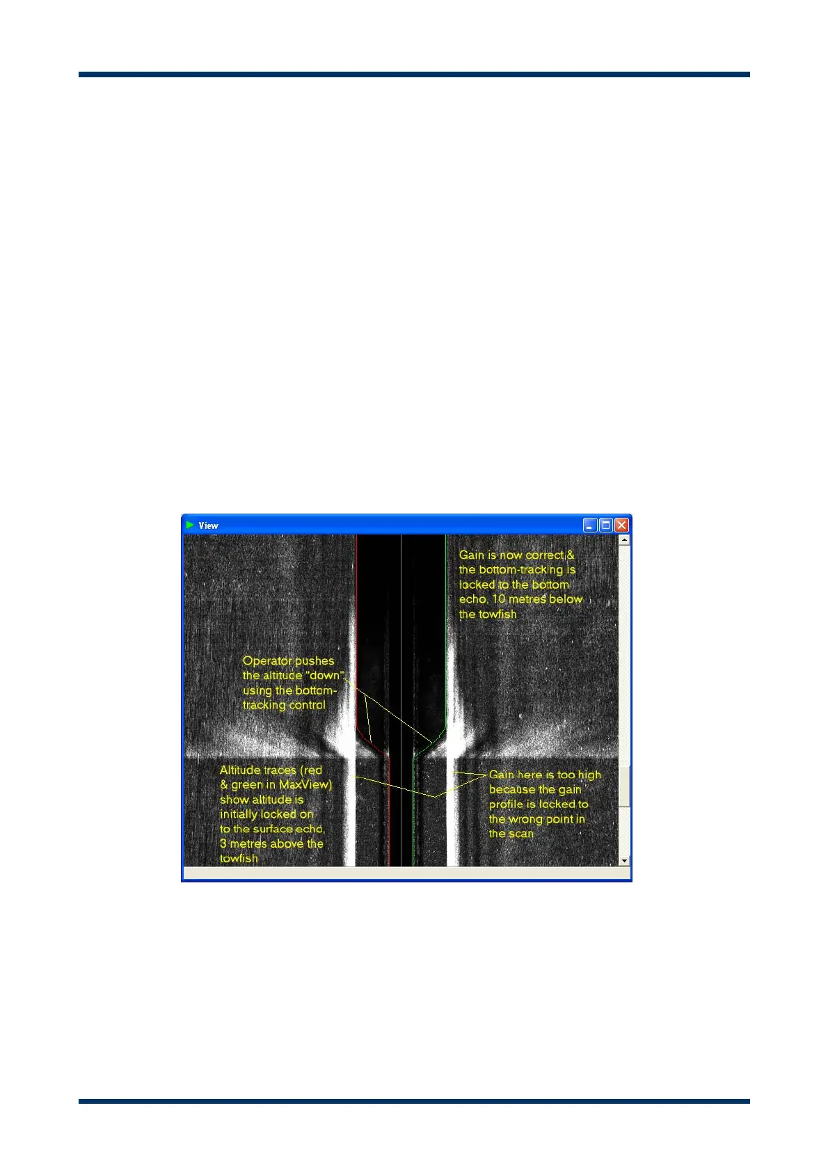 MaxView’s sonar parameters, or equivalent, and may also be also marked on the display by a pair of lines