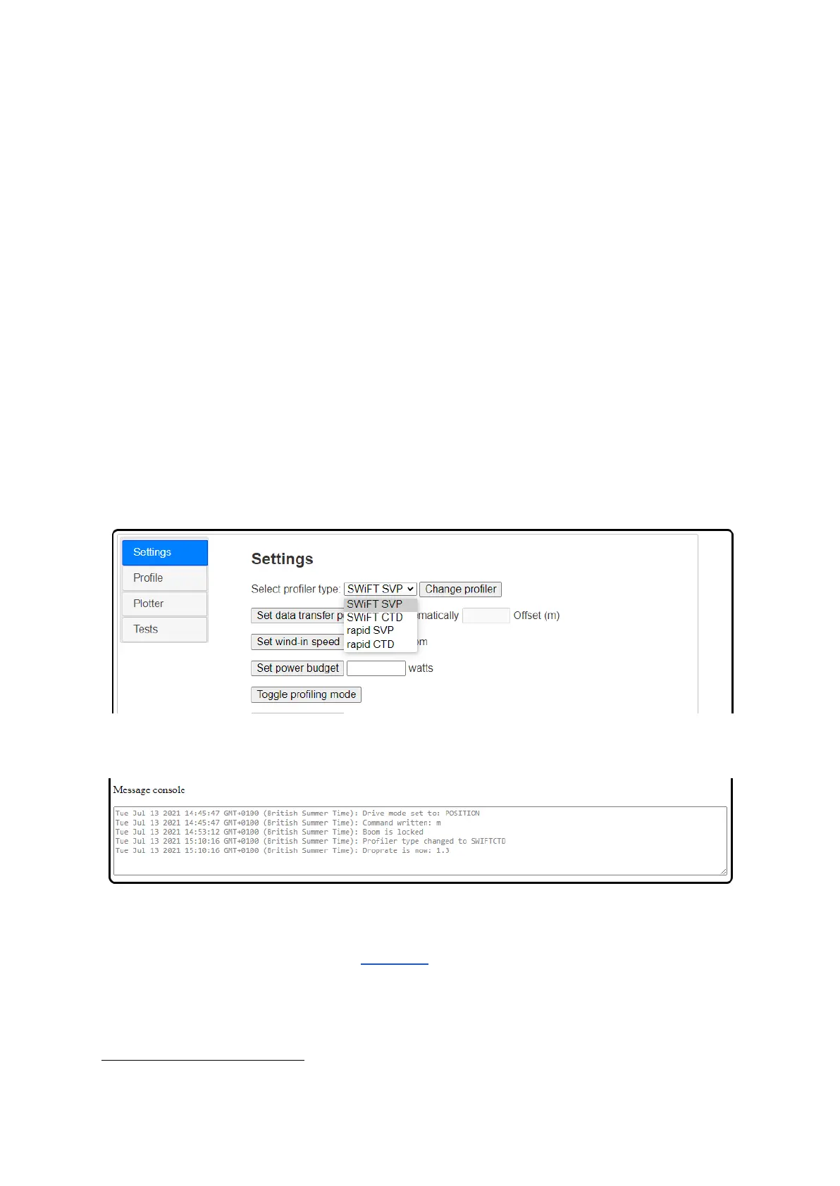 In normal use, it is anticipated that only the first option, the profiler type, will be routinely changed.