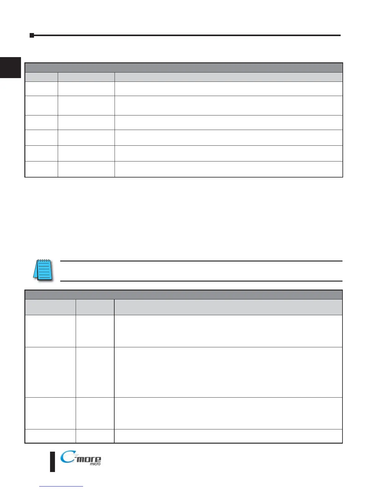 Note: The following errors can be generated from the designated PLC, are monitored by the C-more Micro-