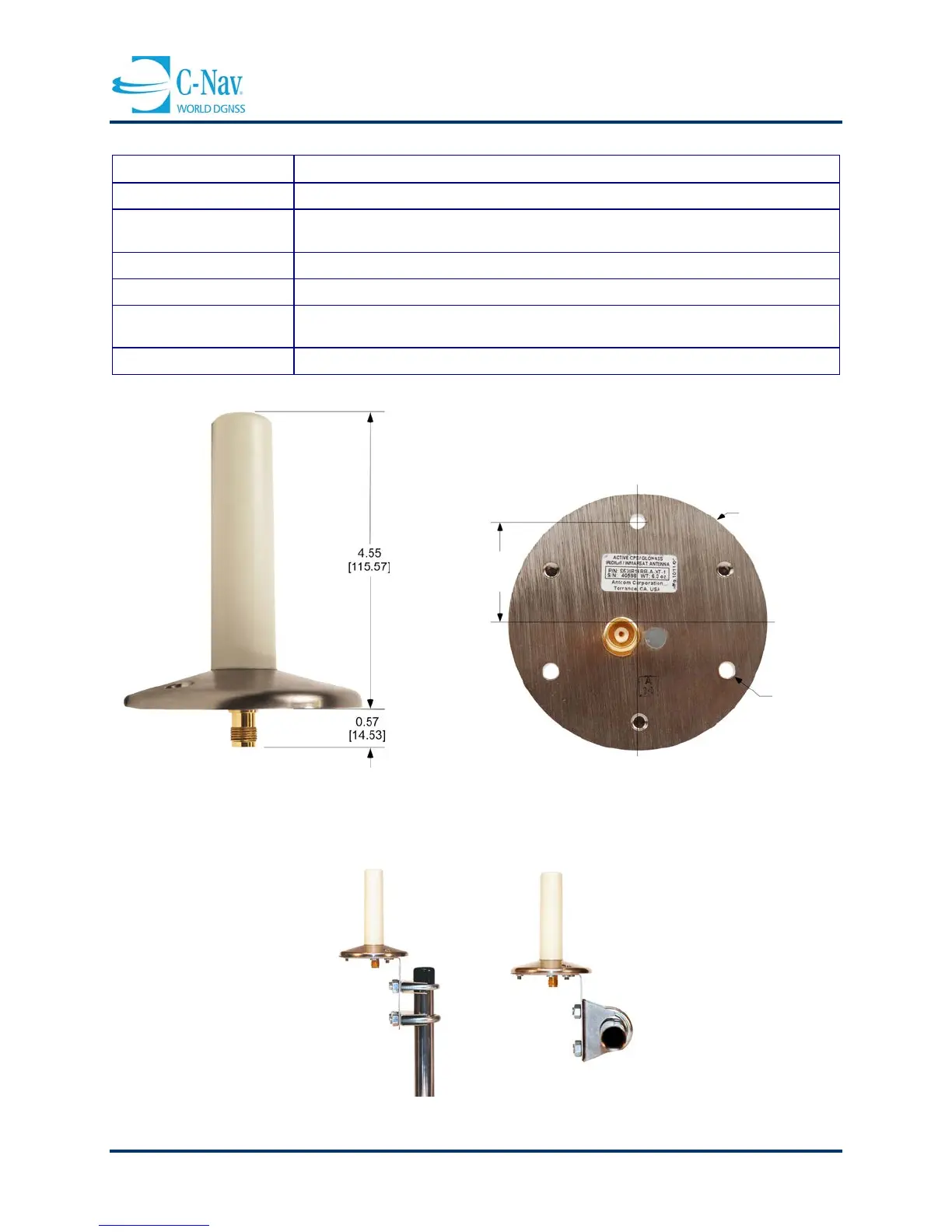 Figure 3-15: C-Nav1010 NAV82-001018-0001LF Antenna Mounting (45° - 25°)
