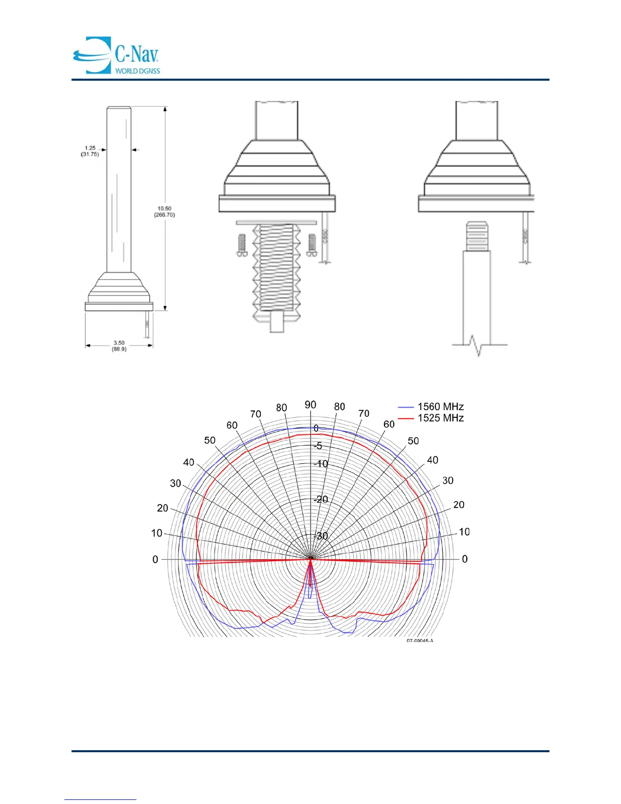 Figure 3-17: C-Nav1010 NAV82-001003-0001LF Antenna and Mounts (<25°)