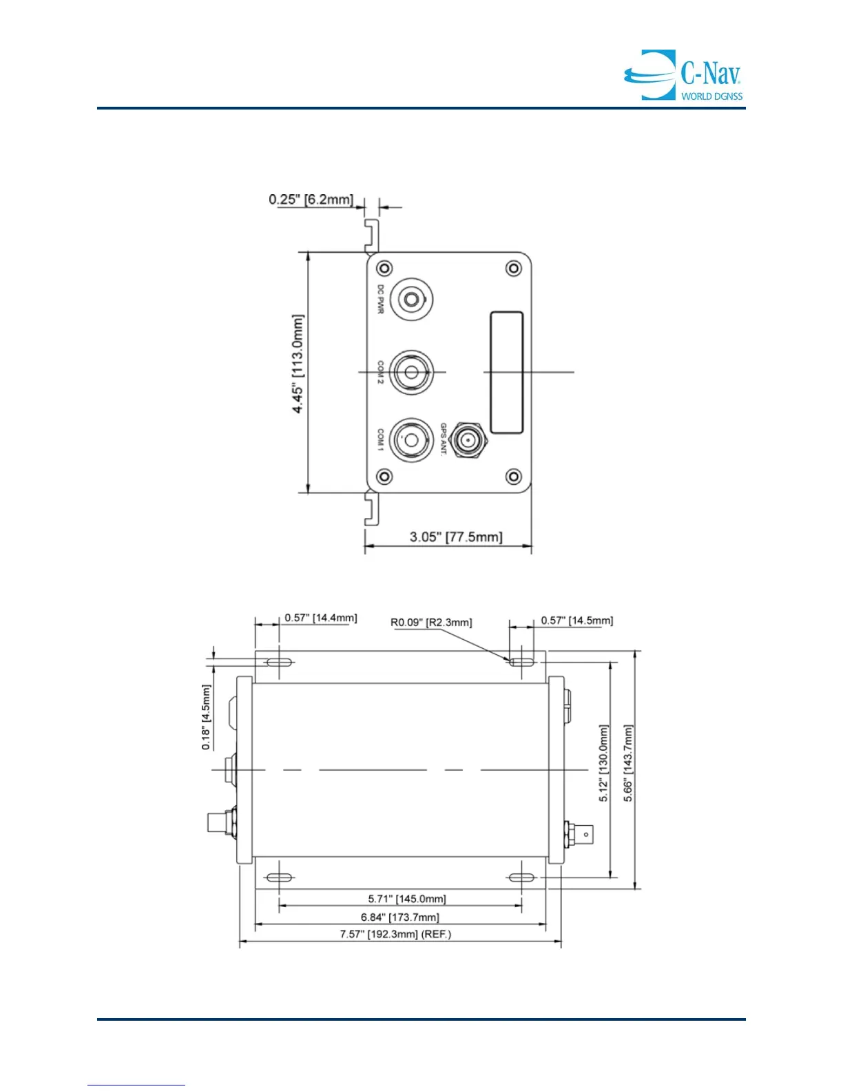 C-Nav IALA - C-Nav2050; C-Nav2050 Receiver; Figure 3-19: C-Nav2050 Front View; Figure 3-20: C-Nav2050 Top View