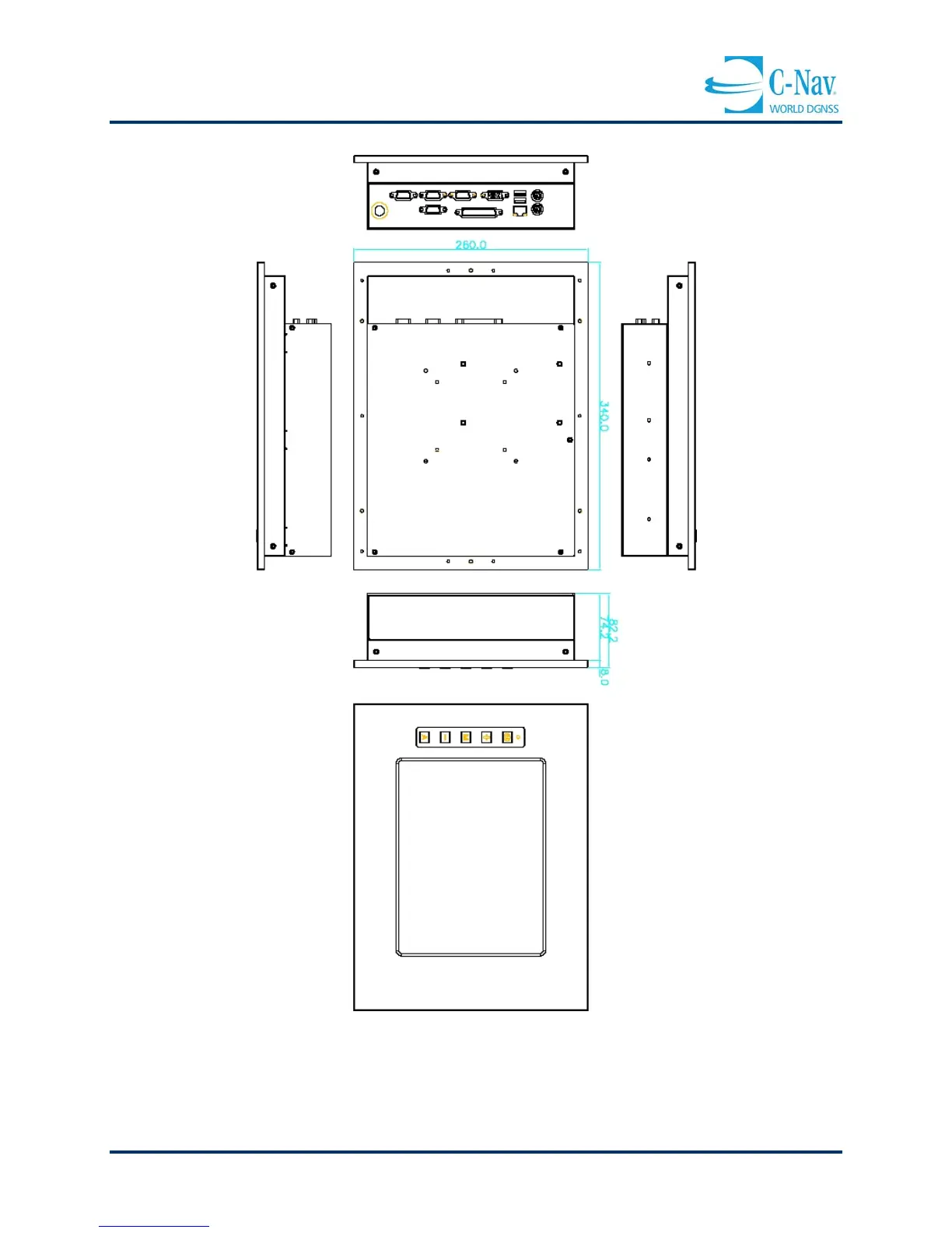 C-Nav IALA - Figure 3-59: C-Navigator II (Side USB-Port Model) Outline Diagram (MM)