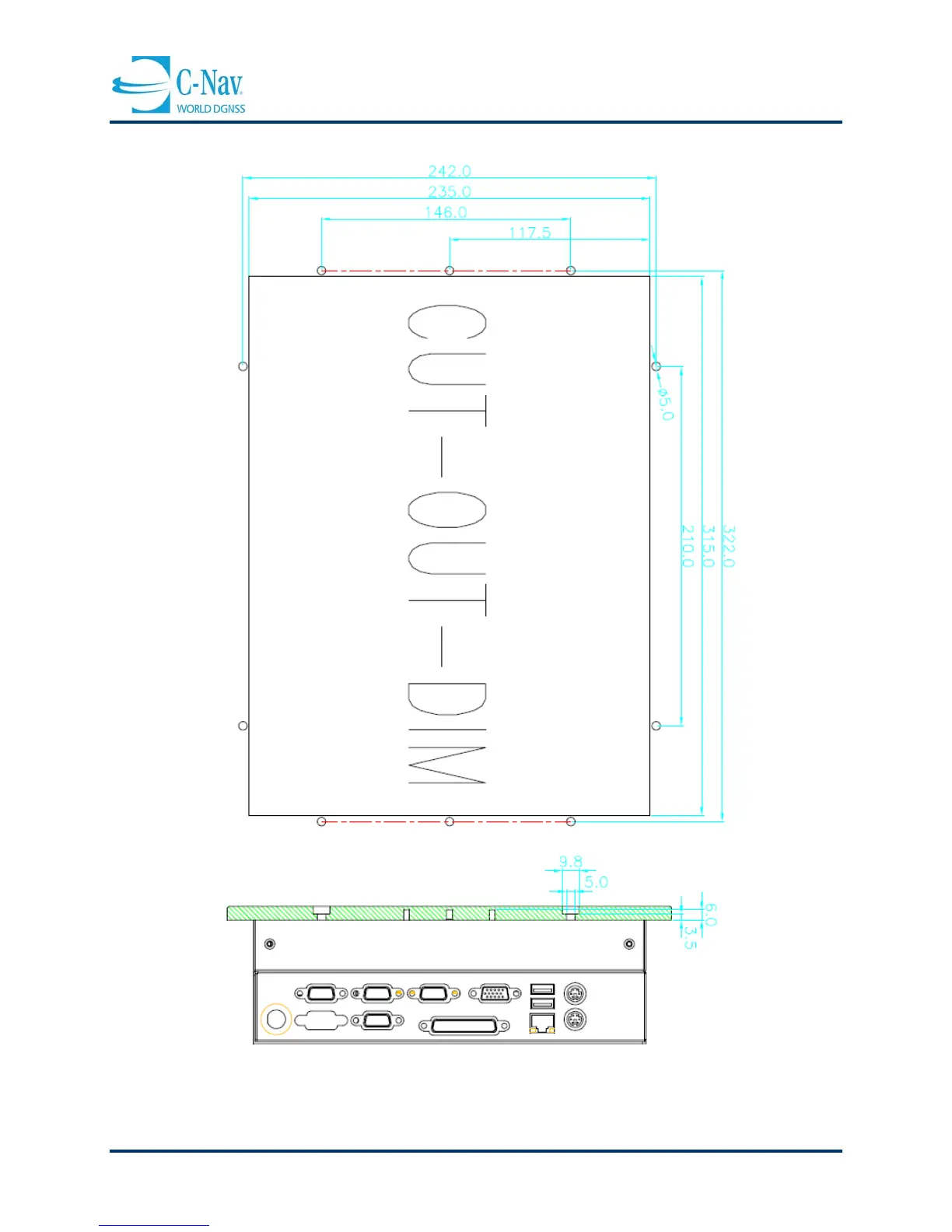 Figure 3-60: C-NaviGator II Cut-out Diagram (mm)