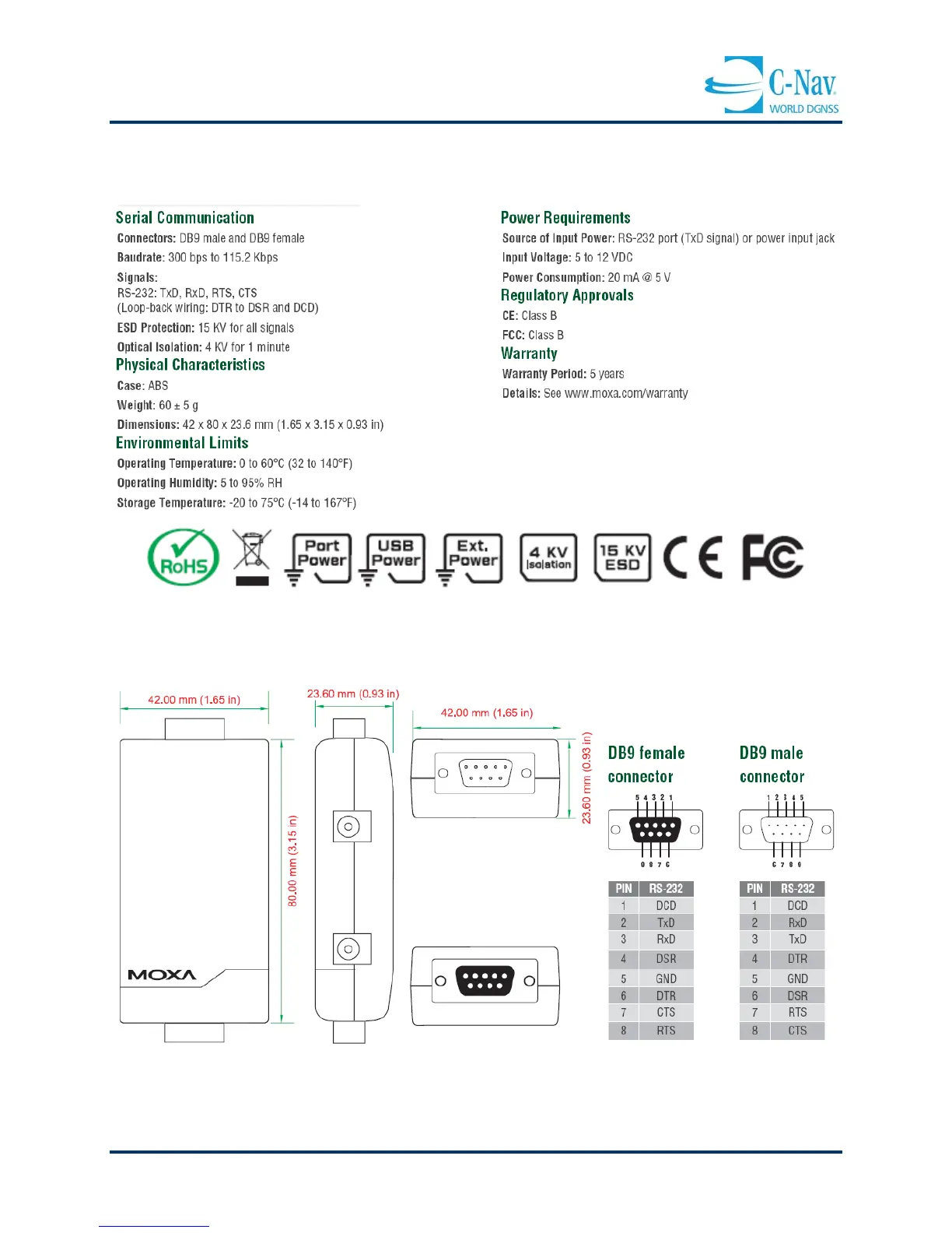 C-Nav IALA - TCC-82 Specifications; TCC-82 Dimensions; Figure 4-4: TCC-82 Converter Dimensions