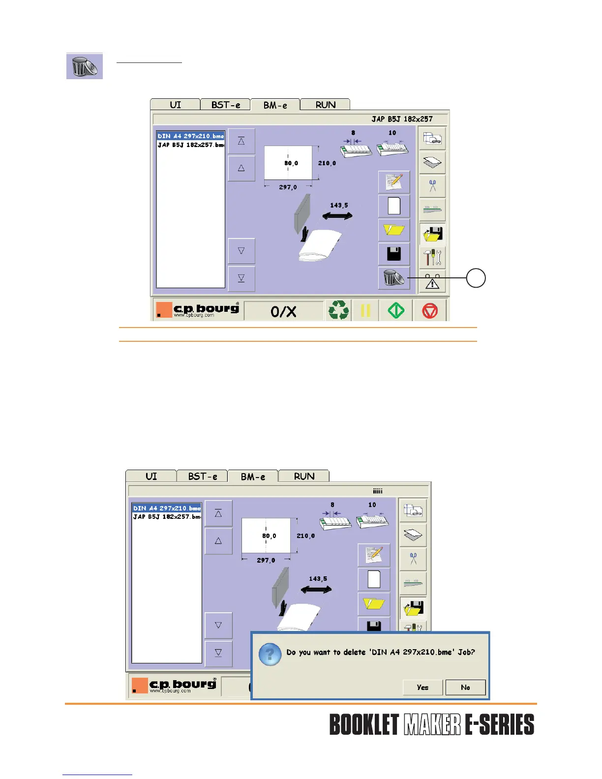 Press OUI/YES to erase the selected job or NON/NO to cancel and return to the