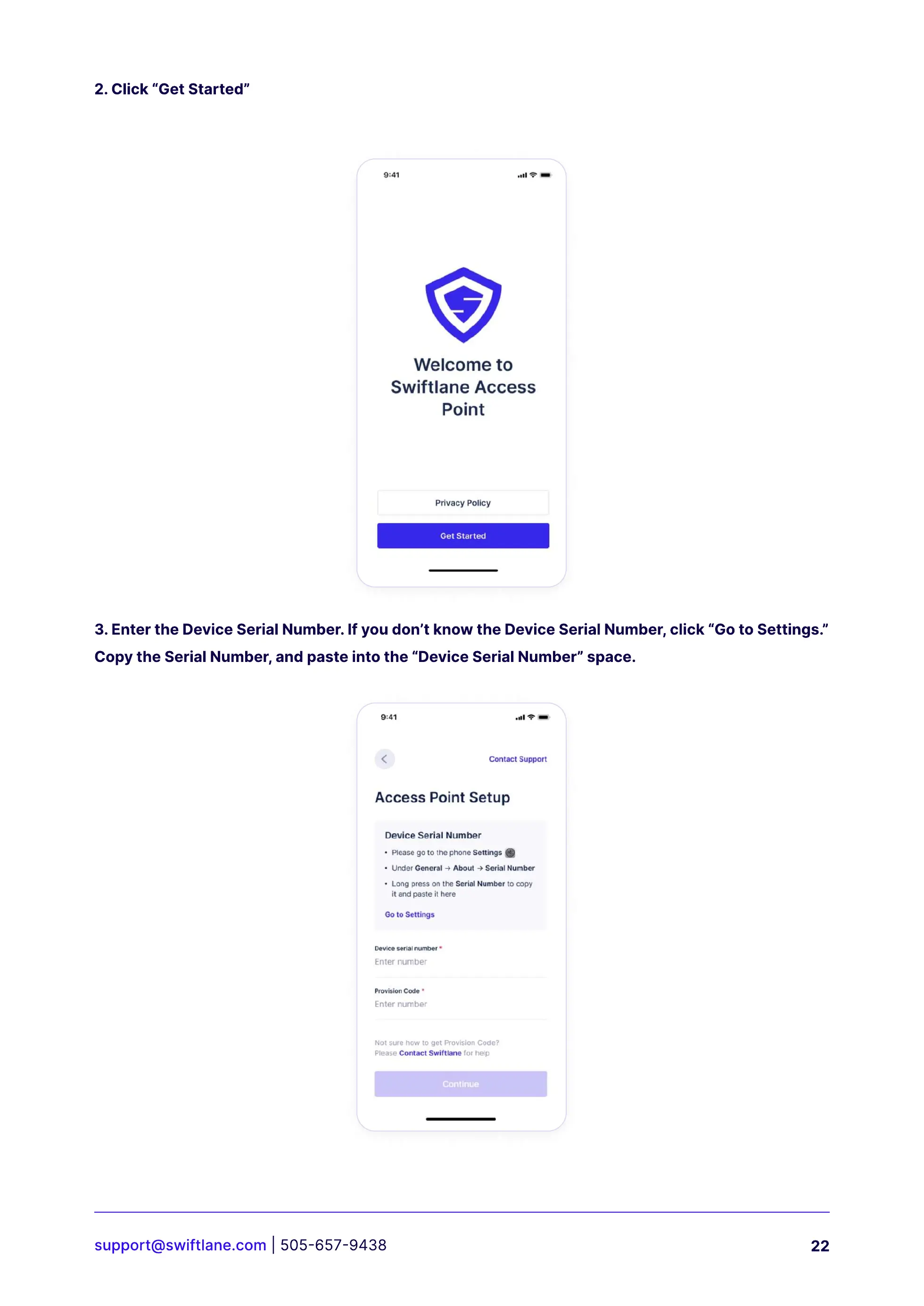 3. Enter the Device Serial Number. If you dont know the Device Serial Number, click Go to Settings.