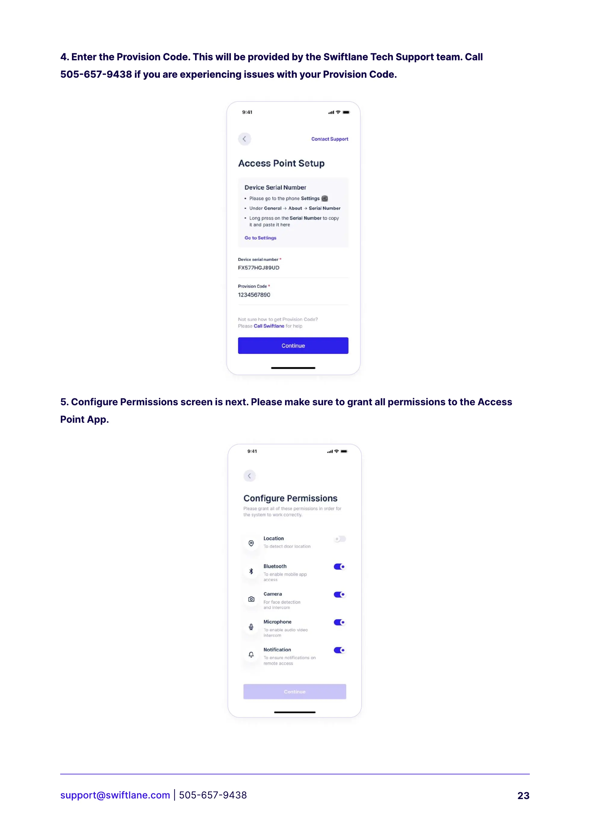 4. Enter the Provision Code. This will be provided by the Swiftlane Tech Support team. Call