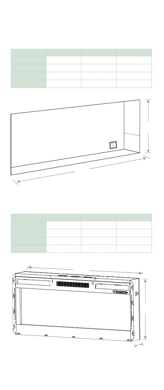 C3 Sierra 48 - In-Wall Installation Guide; Cabinet Dimensions for In-Wall Installation; Firebox Dimensions for In-Wall Installation