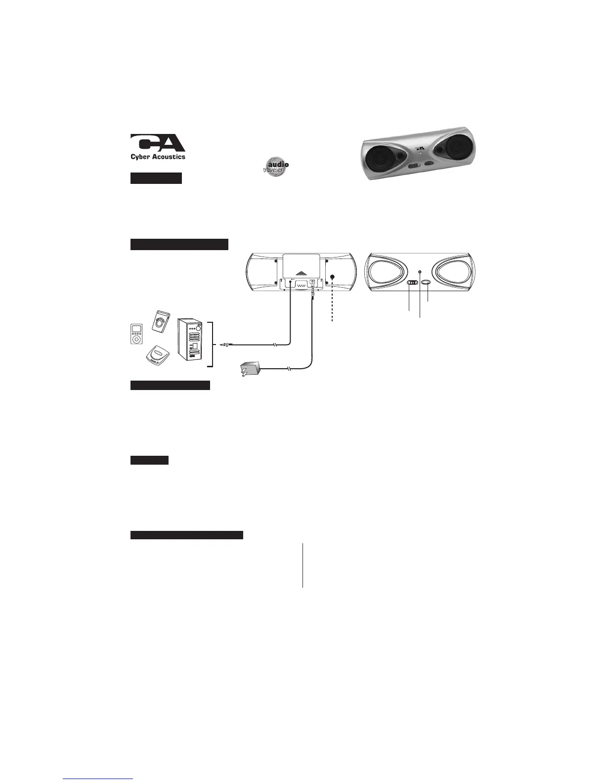 Usar pilhas alcalinas de boa qualidade ou o adaptador de corrente AC/DC da Cyber Acoustics. A Cyber Acoustics não assume a responsabilidade